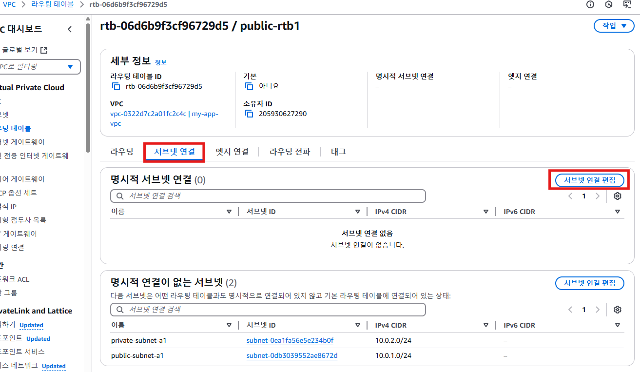 public-rtb1과 public-subnet-a1을연결해준다