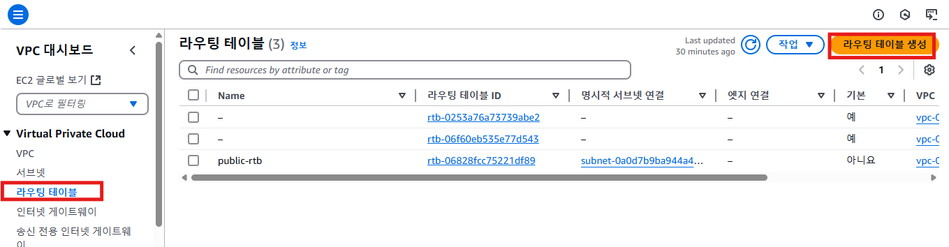 같은 방식으로 private-rtb1도 생성한다
