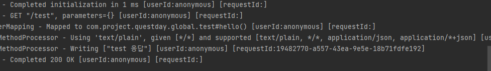 - 요청/응답 로그에 userId, requestId를 자동으로 출력