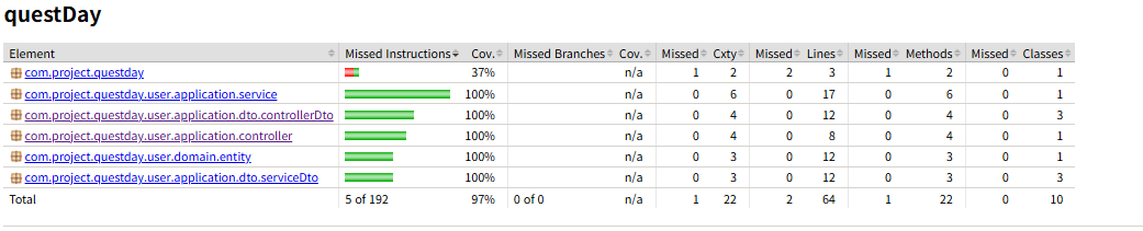 - 클래스/메서드 커버리지: 테스트된 클래스와 메서드 비율