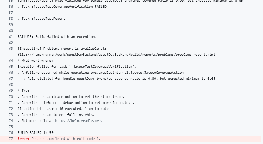 - jacocoTestCoverageVerification: 빌드 시 커버리지 기준 미달이면 실패 처리