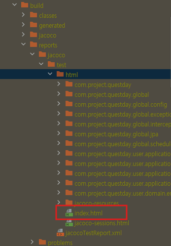 - build/reports/jacoco/test/html/index.html → 패키지/클래스 단위 라인/브랜치 커버리지 확인 가능
